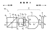 しかし、図16に示すような従来例によっては、上述したように、投写レンズ102の縮小側をテレセントリックな状態としつつ、PBSを挿入し得るバックを確保する必要があり、投写レンズのうち、特に縮小側のレンズの径が大型化し、その結果、投写光学系や投写型表示装置としてのコンパクト化が図れないという問題があった。また、図16に示すような従来例のものでは、照明光学系120からの光束がPBS101に入射する際には、偏光分離面の入射角度特性を考慮する必要があることから、照明光学系120からの光束をテレセントリックな状態とするための、コンデンサレンズ115a、115bが必要とされ、これが投写光学系のコストアップおよび大型化につながるという問題があった。