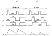 図7(a)は、図1に示すDC−DCコンバータにおける、軽負荷時でない通常動作時の前記ゲート駆動信号g1〜g3およびインダクタ電流ILの波形図である。ILは、正のときはインダクタLから負荷10に向けて流れ、負のときはインダクタLからローサイドスイッチング素子を介してグランドに流れる。