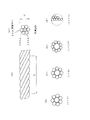 そして、芯材と側材の金属素線の素線直径は、いずれも0.008mmから0.200mmとし、芯材と側材とは同一素線直径の金属素線を撚合構成して用いてもよい。尚、実施例4〜6、及び撚り構成1×7の他の実施例の芯材と側材の素線直径(線径)、及び線径比(芯材/側材)を整理すると、表6となる。