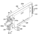 図6及び図7は、基板ケース200及び基板ケース200をスロットマシン1の本体をなす筐体に取り付けるための取付ベース250、コネクタ規制部材500を示す分解斜視図であり、図8は、基板ケース200を取付ベース250に組み付けた状態を示す斜視図であり、図9は、コネクタ規制部材500を構成する取付側部材510及びコネクタキャップ520の要部拡大斜視図であり、図10(a)は、図9のA−A断面図であり、図10(b)(c)は、図9のB−B断面図であり、図11は、基板ケース200を取付ベース250に組み付け、更に取付側部材510に対してコネクタキャップを装着した状態を示す斜視図であり、図12(a)は、図11のC−C断面図であり、図12(b)は、図11のD−D断面図である。