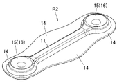 [1]鍛造素材に対し型成形による1次成形を行って、鍛造素材に対して断面積の小さい減肉部を有する1次成形品を得る1次成形工程と、