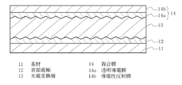 本発明の第1、第2の実施形態では、図1において、先ず、基材11上に表面電極12を介して積層された太陽電池の光電変換層13上に導電性酸化物微粒子を含む透明導電膜用組成物を湿式塗工法を用いて塗布し、透明導電塗膜を形成する。
