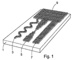 WO03/103835号に記載のマイクロピラー構造は、Amic AB社、ウプサラ、スウェーデンにより製造され、毛管流路と、吸収区域に対する移行及び支持と、の両方を構成するように、用いられた。試験される構造を含むポジ原型は、ケイ酸製構造体をエッチングすることで作製され、ニッケル製で作製されたネガ型は、このケイ酸製原型を用いて作製された。複数の試験構成は、ネガ型に対する熱可塑性プラスチック押し出しにより作製され、1ミリメートルの厚さのポリプロピレン製ディスク上に構造体を生成したものであるが、これは、垂直突起又はマイクロピラーで構成される流体流路又は開いた流路を各々がもつストリップに切断されたものである。このストリップは、実用上の理由から、典型的な顕微鏡送り台と同じ寸法、すなわち20×76ミリメートルであった。