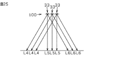 以下、本発明の照明装置の第1の実施形態について説明する。図1は第1の実施形態の照明装置100の概略的な全体構成図である。図2は第1の実施形態の照明装置100の一部を構成するランプモジュール33を概略的に示した図である。詳細には、図2(A)はランプモジュール33を図1の右下側から見た図、図2(B)はランプモジュール33を図1の手前側(図2(A)の右側)から見た図、図2(C)はランプモジュール33を図1の右上側(図2(A)の下側)から見た図である。図2(D)は図2(A)のA−A線に沿った概略的な断面図、図2(E)はレンズ31を取り外した状態におけるランプモジュール33を図1の右下側から見た図である。図3はランプモジュール33から照射される光L1,L2,L3を説明するための図である。