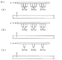 10 is formed on the p-side electrodes 1-1g1, 1-1g2, 1-1g3, 1-1g4, 1-1g5, 1-1g6, 1-1g7, 1-1g8, 1-1g9 of the LED element 1-1. Bumps 3p1a, 3p2a, 3p3a, 3p4a, 3p5a, 3p6a, 3p7a, 3p8a, 3p9a, and bumps 3p1b, 3p2b, 3p3b, 3p4b, 3p5b, 3p6b, 3p7b, 3p7b, 3p7b, 3p7b , 3p9b are joined to each other. Specifically, FIG. 10A shows bumps 3p1a, 3p2a, 3p3a of the LED element 1-1 and bumps of the
