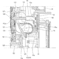 また、前記基板ケース101の裏面には、図4に示すように、前記枠状装飾体40に設けられた球誘導通路44を、前記設置部材81の下面をなす図示しない画壁部に形成された第1球排出口85(図17参照)に連通接続する特別入賞球排出通路111が配設されており、前記第2の特別入賞装置45に入賞したパチンコ球を、球誘導通路44および特別入賞球排出通路111を介して遊技盤20の下方へ排出するようになっている。なお、前記特別入賞球排出通路111は、前記球誘導通路44に連通接続する第1通路部112と、該第1通路部112の下端部および第1球排出口85を連通接続する第2通路部113とから構成されている。ここで、前記第1通路部112は、前記基板ケース101の上部において左方向へ下方傾斜すると共に該基板ケース101における左側端縁(枠状装飾体40から離間する側端縁)に沿って上下方向に延在する逆L字状に形成されており、該第1通路部112(特別入賞球排出通路111)の上流端部が基板ケース101の右側方へ突出して前方へ開口するよう形成されている。そして、前記遊技盤20と設置部材81とを組み付けた際に、前記第1通路部112の上流端部の前方開口が球入口112aとして機能して、前記球誘導通路44の球出口44aに連通接続し、前記第2の特別入賞装置45に入賞したパチンコ球が第1通路部112(特別入賞球排出通路111)へ移動し得るようになっている(図4参照)。