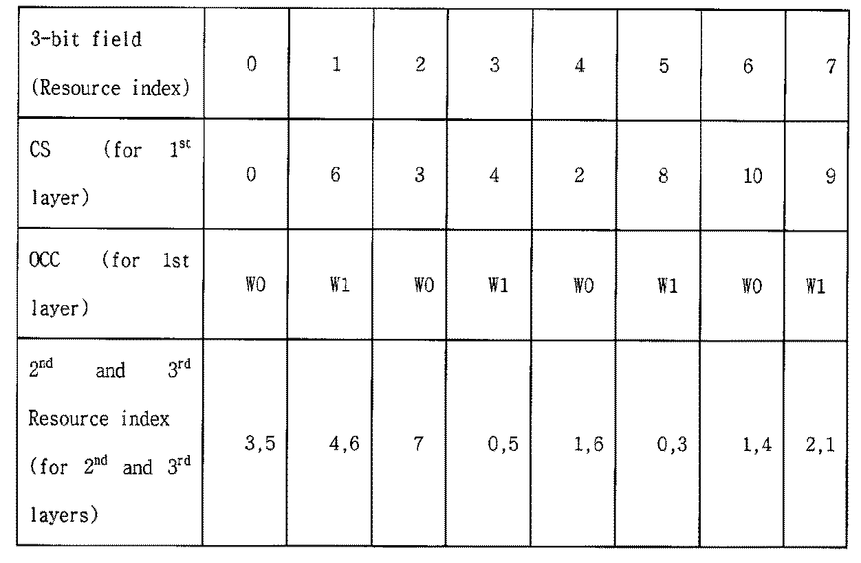 第1サブセット(例えば、{0,1,2,3}におけるCSI値)で与えられた3ビットフィールド値の場合、OCCコードは階層1から階層2に変更されず、階層3及び階層4のために使用されたOCCコードは階層1&2のために使用されたOCCコードと異なる。