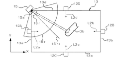 最後に、上記実施形態とは異なる比較例について図12及び図13を参照して説明する。図12は光検出器15を上記検出平面範囲10Rの辺10Rdの中央部の外側に隣接配置した場合を示す平面図である。
