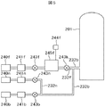 第2のガス供給管232aの上流には、ガス供給管232eが接続されている。ガス供給管232eには、上流側から順に、第2の不活性ガス供給源240e、MFC241e、開閉バルブ243e、ガス溜め部245e、開閉バルブ243hが設けられている。ガス溜め部245eには、圧力センサ244eが設けられている。本例では、ガス溜め部245eの内径は、第2の不活性ガス供給源240eと開閉バルブ243eの間のガス供給管の内径、ガス溜め部245eと開閉バルブ243eの間のガス供給管の内径、ガス溜め部245eと開閉バルブ243hの間のガス供給管の内径、ガス供給管232eの内径、第2のガス供給管232aの内径のいずれよりも大きい。