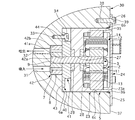 開口端6bには、テーパ面35が形成されている。テーパ面35とモータハウジング5の円筒部材23との間には、シールリング36が介装されている。