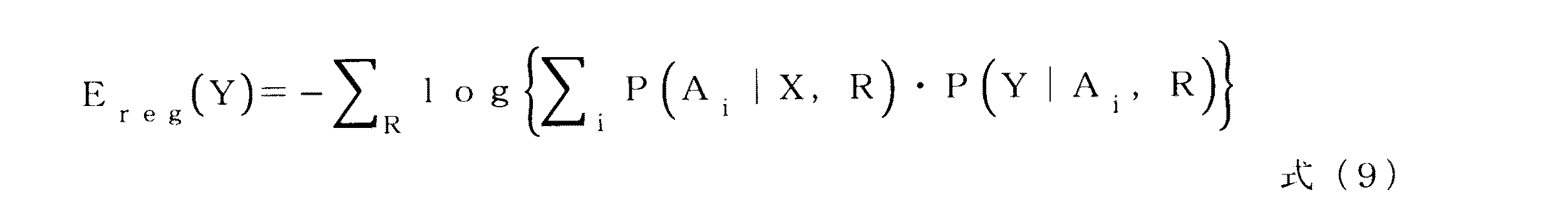 属性確率演算部11は、例えば、属性毎に予め定められたテンプレートと、画像から抽出した領域Rとの類似度を計算し、類似度から条件付確率P(Ai|X,R)を求めればよい。ここで、類似度を変数として条件付確率P(Ai|X,R)を求める関数は、予め属性毎に定められ、属性確率演算部11は、その関数に類似度を代入することによって、条件付確率P(Ai|X,R)を計算すればよい。ただし、条件付確率P(Ai|X,R)を計算するアルゴリズムは、特に限定されず、他の方法で条件付確率P(Ai|X,R)を計算してもよい。