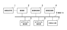 外部出力部7は、典型的には、CRTやTFT液晶等のモニタであり、撮像部2及び画像記録部4から取得した画像データを表示、又は、画像データにオブジェクト登録部5及びオブジェクト識別部6の結果出力を重畳表示する。また、外部出力部7は、オブジェクト登録部5及びオブジェクト識別部6の結果出力を電子データとして、外部メモリ等に出力する形式をとってもよい。