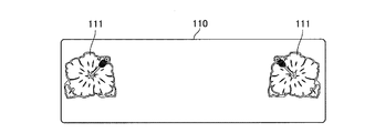 図3に戻り、ドット表示器100は、複数のLEDが前面パネル110の形状と略同一の横長矩形形状に等間隔で配列され構成される。ドット表示器100は、任意の箇所のLEDを点灯(点滅)させることで、前面パネル110に施されたデザインの任意の箇所(本実施の形態ではハイビスカス絵柄の告知部111)を背面から照明する。
