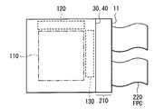 上記実施の形態の有機EL表示装置は、例えば、図12に示したようなモジュールとして、後述する適用例1〜5などの種々の電子機器に組み込まれる。このモジュールは、例えば、基板11の一辺に、保護層30および封止用基板40から露出した領域210を設け、この露出した領域210に、信号線駆動回路120および走査線駆動回路130の配線を延長して外部接続端子(図示せず)を形成したものである。外部接続端子には、信号の入出力のためのフレキシブルプリント配線基板(FPC;Flexible Printed Circuit)220が設けられていてもよい。