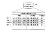 通信機101およびGPS通信機107は、例えば、図1において符号102aで例示する中継機102aの通信エリア103a内に位置していれば、中継機102aと通信可能である。また、通信機101およびGPS通信機107は、図1において符号102bで例示する中継機102bの通信エリア103b内に位置していれば、中継機102bと通信可能である。通信エリア103は、例えば半径150mの範囲である。