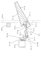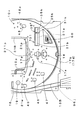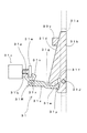 左側の落下防止壁31dの下端には、略V字の切り欠き部31eが設けられている。そして、左側の落下防止壁31dは、この切り欠き部31eの前後(開閉部材31bが立設した状態の場合の前後)で、2股に枝分かれしている。尚、以下の説明において、左側の落下防止壁31dの下端側部分のうちで、切り欠き部31eを挟んで、「前方に位置する部位」を第1の当接部31fと称し、後方に位置する部位を、第2の当接部31gと称する。