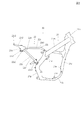 メインフレーム21は、ヘッドパイプ21hと、このヘッドパイプ21hから後方へ延びるメインパイプ21mと、このメインパイプ21mの後部から斜め後方下方へ延びるピボットプレート21pと、前記ヘッドパイプ21hから斜め後方下方へ延びるダウンパイプ21dと、このダウンパイプ21d下端と前記ピボットプレート21pとを連結するロアパイプ21bと、エンジン取付部21eとを備えている。