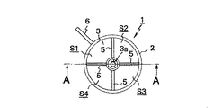 そして、ケース2の内部には容器3との間に空間が形成されるが、この空間は、図2に示すように、平面視十字状に配置された仕切板5によって区画され、空間には同じ容積の4つの室S1,S2,S3,S4が周方向に形成されている。ここで、図1及び図3に示すように、容器3の上端は仕切板5の上端よりも高い位置あり、この上端の開口部3aは仕切板5の上方において開口している。