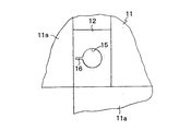 本実施の形態では、複数の桁12の1つ(図4及び図5参照)には図6に示すような円穴15が形成されている。この円穴15は上方が開口する垂直な穴であって、その外周からは係合溝16が径方向外方に延びている。又、図5に示すように、円穴15が形成された桁12の側面(図5の手前側の面)には矩形の検知窓17が形成されている。