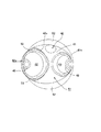 シリンダヘッド17には、天井面41にシリンダボア16bの中心軸であるシリンダ軸Cに関して互いに反対位置に1つずつ吸気弁口42と排気弁口43が燃焼室40に臨んで開口されるとともに、吸気弁口42と排気弁口43から各々吸気ポート44と排気ポート45が互いに離れる方向に湾曲しながら延出して形成されている。
