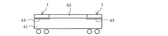 図1は、実施の形態1における車両41を示す側面図、図2は、実施の形態1に係る車両用空調装置1を示す上面図、図3は、実施の形態1に係る車両用空調装置1を示す側面図である。この図1,図2,図3に基づいて、車両用空調装置1について説明する。図1に示すように、車両用空調装置1は、例えば車両41の天井42における車両長手方向の両端部(天井(空調装置下)43)に、2台埋め込まれている。なお、本発明に係る車両用空調装置1は、天井埋め込み形に限らず、図4に示すように、車両41の屋根上に載置する屋根上置き形とすることもできる。