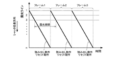 図2に示すように、ローリングシャッタ露光方式では、ラインごとに露光が行われ、各ラインの露光では所定の露光期間をおいて読み出し動作およびリセット動作が繰り返される。一方、ラインごとの露光は、シャッタ走査方向に(ここでは、上から下に向かって)順に行われることから、露光のタイミングがラインごとにずれる。 As shown in FIG. 2, in the rolling shutter exposure method, exposure is performed for each line, and in the exposure of each line, the read operation and the reset operation are repeated after a predetermined exposure period. On the other hand, the exposure for each line is sequentially performed in the shutter scanning direction (in this case, from the top to the bottom), so that the exposure timing is shifted for each line.