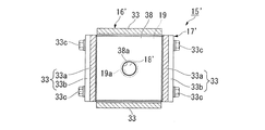 本実施形態において、揺動支持部18は上ブラケット16に一体形成されるが、上ブラケット16とは別体の揺動支持部18を上向き係止面16aに固設してもよい。また、揺動支持部18を下ブラケット17に設けて上ブラケット16の上向き係止面16aに当接支持させてもよい。また、上下ブラケット16,17とは別体の例えば球状の揺動支持部18を上下ブラケット16,17に固定せずに挟み込んでもよい。また、下ブラケット17の第二板部34を段差形状ではなく平坦形状にして上下係止面17a,17bを平坦にしてもよい。