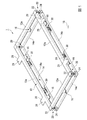 図1及び図2(a)、(b)に示すように、第1架台12は、平面視で矩形枠状の部材であり、角部に配置された4つの第1コーナ部材22と、各第1コーナ部材22間を架け渡す4本のフレーム部材12a、12a、12a、12aとを備えている。また、図1及び図3(a)、(b)に示すように、第2架台14は、第1架台12と同様の構成からなり、角部に配置された4つの第2コーナ部材24と、各第2コーナ部材24間を架け渡す4本のフレーム部材14a、14a、14a、14aとを備えている。