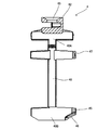 容器2は、図1〜図3に示すように、上面に前記開口を有する円筒状の首部20と、首部20に連続する中空の胴部22とにより構成されている。胴部22は、首部20よりも大径に形成された肩部23を備えている。この容器2としては、例えば、透明のプラスチック製ブロー成形品が挙げられるが、ガラス製品の他、インジェクション成形品などであっても構わない。