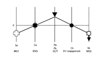 そして、この特許文献1に記載されたハイブリッド駆動装置は、各係合機構の動作を制御することにより、“第1スプリットモード”と、“第2スプリットモード”と、“第3スプリットモード”とのいずれかを選択的に設定することが可能である。“第1スプリットモード”は、3つのモードの中で中間の車速域で設定される動作モードであり、第1係合機構を係合して第2係合機構および第3係合機構を共に解放することにより設定される。“第2スプリットモード”は、3つのモードの中で最も高い車速域で設定される動作モードであり、第2係合機構を係合して第1係合機構および第3係合機構を共に解放することにより設定される。“第3スプリットモード”は、3つのモードの中で最も低い車速域で設定される動作モードであり、第3係合機構を係合して第1係合機構および第2係合機構を共に解放することにより設定される。