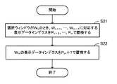 〔S73〕表示データインデクスPiで指定される表示データ格納領域17bの表示データに対して、ウィンドウ番号Wiで表示するための表示制御を行う。なお、ステップS71〜73の動作は、ウィンドウ番号Wi毎に行われる。