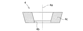 穿孔ステップS2の詳細について説明する。図5に示した荒地鍛造体3の底部3bを除去するように、荒地鍛造体3に対して、プレス加工による抜き落とし、ウォーターカッターによる切削等により穿孔加工を施す。その結果、図6に示すように、中心軸線4aに沿った貫通孔4bを有する穿孔体4が作製されることとなる。かかる穿孔体4は、荒地鍛造体3の周壁部3cに相当する周壁部4cを有している。また、必要に応じて、穿孔体4に中間リング圧延を施すとよい。