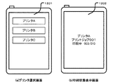 図12は携帯型通信端末装置200の表示部203の表示例を示す図である。図12(a)に示すプリンタ選択画面1201は、印刷対象のプリンタを選択する画面を示す例である。図12(b)に示す印刷状態表示画面1202は、印刷ジョブを投入した印刷装置の現在の状態をリアルタイムに表示している画面を示す例である。