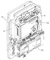 左枠部43Lの下端部には、図15に示すように、上記ステージ374へ向けて開口する袖開口377が設けられ、右枠部43Rの下端部にも同様の袖開口(図示せず)が設けられている。