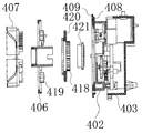 (6)この後、回転盤406の回転を停止すると、前記図43(a)に示す、動作前の状況に復帰する。