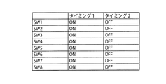 図8に示す検出回路によって受力体230に加えられた力Fを検出するには、各スイッチSW1〜SW4の接続状態を図9のタイミング1の列に記載されているように制御すればよい。すなわち、スイッチSW1〜SW4を全てONにする(接続する)。これにより、図8の第1マイコン47a及び第2マイコン47bに対して「C11+C12」に対応する出力信号と「C21+C22」に対応する出力信号とが、提供される。第1及び第2マイコン47a、47bは、各出力信号に基づいてF1、すなわち「(C21+C22)−(C11+C12)」を演算し、力F1を評価する。