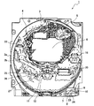 図2に示す遊技盤1のセンターケース5には、中央に演出図柄表示装置6(全体の図示は省略)のLCDパネルが配設され、LCDパネルの画面上では、演出図柄の変動表示等を行うことで、特図に対応する大当り抽選の結果を報知する図柄演出が行われる。また、センターケース5には、周知のものと同様にワープ入口、ワープ樋、ステージ等が設けられている。なお、遊技盤1の遊技領域3には多数の遊技釘4が植設されており、盤面最下部にはアウト口が設けられている。