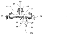 図11に示されるように、この第2実施形態によると、圧力センサ260は統合化されたモジュールを形成するようにエジェクタ42と統合化されている。具体的には、エジェクタ42はベンチュリ通路42aを持っている。それは検知ポート264を形成するために内部で枝分かれさせられている。圧力センサエレメント66は、検出ポート264へ装備されており、ベンチュリ通路42aの圧力を検出するように構成されている。この構成では、圧力センサエレメント66は、機関11で引き起こされた脈動を検出するように構成されていてもよい。