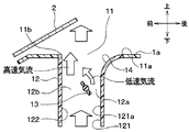 気流偏向部材は、第1流路に高速の気流が発生するとともに、第2流路に低速の気流が発生するように構成されており、
