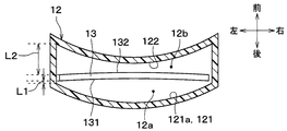 図25に示すように、本実施形態は、ダクト12の第1の壁121、第2の壁122の形状および気流偏向ドア13の形状が第9実施形態と相違する。その他の構成は、第1実施形態と同じである。