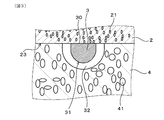 該固体電解質層における上記アノード側とは反対側に配置されたカソード(6)と、を有する燃料電池単セル(1)。 - 上記集電部における上記アノードに接続する面(30)を除いた表面(31)は、空隙(32)により覆われている、請求項1に記載の燃料電池単セル。