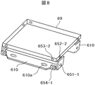 また、側面パネル62aは、締結部品652及び653で2面が底ベース69の側面の2面とそれぞれ固定され、側面パネル62aの下部は脚部610と結部品651および654で2面が固定される。このような構造とすることにより、側面パネル62aは底ベース69及び脚部610とより強固に結合され、比較例で説明した図5に示して構造と比べて、剛性を高めることができる。また折り返し610gの高さHを、脚部610の端部610cから折り返し部610gまでの寸法Dを小さくすることで、折り返し部610gの部分を端部610cの一部の折り返しのみで制作する事ができ、脚部610の折り曲げ加工前の展開寸法で見た場合は、素材の使用量は大きくならず、コスト面で優れる。