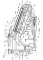 なお、ロック本体66aの前端面の形状は円弧状でなくても、上記した分力F1の作用により回転モーメントが生じない位置又はロック部材66をその前端部が前方突出部62の外側に向って回転させる回転モーメントが生ずる位置にロック部材66の回転中心(取付ビス67により固定される軸)を位置させることにより、常時ロック部材66の弾性部66cに対しても負荷がかかることはないし、ロック部材66が回転してもロック本体66aの前端の右側面が垂下部65に当接するだけであるため、ロック部材66が前方延出部62の外側にはみ出ることもない。