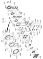 扉枠3の皿ユニット200について、図27乃至図42を参照して詳細に説明する。図27は扉枠の皿ユニットを前から見た斜視図であり、図28は皿ユニットを後ろから見た斜視図である。図29は皿ユニットを主な部材毎に分解して前から見た分解斜視図であり、図30は皿ユニットを主な部材毎に分解して後ろから見た分解斜視図である。図31(a)は皿ユニットの演出操作ユニットを前から見た斜視図であり、(b)は演出操作ユニットを後ろから見た斜視図である。図32は演出操作ユニットを主な部材毎に分解して上から見た斜視図であり、図33は演出操作ユニットを主な部材毎に分解して下から見た分解斜視図である。図34は演出操作ユニットの取付ベースユニットを分解して上から見た分解斜視図であり、図35は取付ベースユニットを分解して下から見た分解斜視図である。