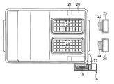 図4は飼育ケージ10の平面図で、前記給排気フード7,8と接続する給排気口28,29が形成されている。前記ラック側に取り付けられた飼育ケージ解放手段16のフック27は、飼育ケージ10の先端側面と係合しており、飼育ケージ10をラックの所定位置まで移動させると、前記フック27も移動し、前記復元バネ19が圧縮するので、飼育ケージ11の端側面を係止しているフック17が、飼育ケージ10をラックの外方に飛び出させる方向に付勢することとなる。