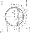 底壁部301は、ベースカバー1の一方の端部14(第1端部140)に形成された開口(以下、「第1開口」ともいう)を塞ぐように、第1端部140及び第1開口に対向する。周壁部300は円筒状を呈し、底壁部301に設けられる。周壁部300は、底壁部301の縁部からベースカバー1側に延びるように形成される。周壁部300は、ベースカバー1の一方のネック部13を囲むようにこのネック部13の周囲に配置される。周壁部300は、例えば底壁部301から最も離れた縁部がネック部13の凹環部131の外側に配置される。かかる場合、周壁部300は、ネック部13の直環部132を完全に覆う。