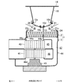 次に送風部3の構成について説明する。図3及び図4に示すように、送風部3は、上側ファン(第1ファン)40及び下側ファン(第2ファン)41と、これら上側ファン40及び下側ファン41を回転駆動するファンモーター43と、上側ファン40及び下側ファン41を収容する樹脂製のスクロールケーシング44とを有している。上側ファン40及び下側ファン41は遠心式ファン(シロッコファン)である。この実施形態では、上側ファン40の直径を下側ファン41の直径よりも若干小さく設定しているが、同じにしてもよい。また、上側ファン40及び下側ファン41を一体にすることも可能である。