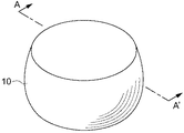 図1は、本実施の形態の立体造形物10の外観を示した斜視図である。本実施の形態の立体造形物10は、側面が湾曲して膨らんだ略円筒形状を有している。立体造形物10の表面は、色を有している。なお、本発明に係る立体造形物の形状、並びに本発明に係る製造方法によって製造される立体造形物の形状は、図1に示す形状に限定されるものではなく、例えば、六面体や球型や中空構造やリング構造や蹄鉄型などあらゆる形状に適用することができる。