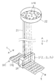 図2の通り、シュート部2(21,22,23)は、直角方向Yに等間隔を置いて配列された筒状の案内路20を備える。各案内路20は、上下方向Zに延設されており、ポケット102に対応して配置される。案内路20を通じる内容物110は、搬送されるシート101のポケット102内に落下して充填される。