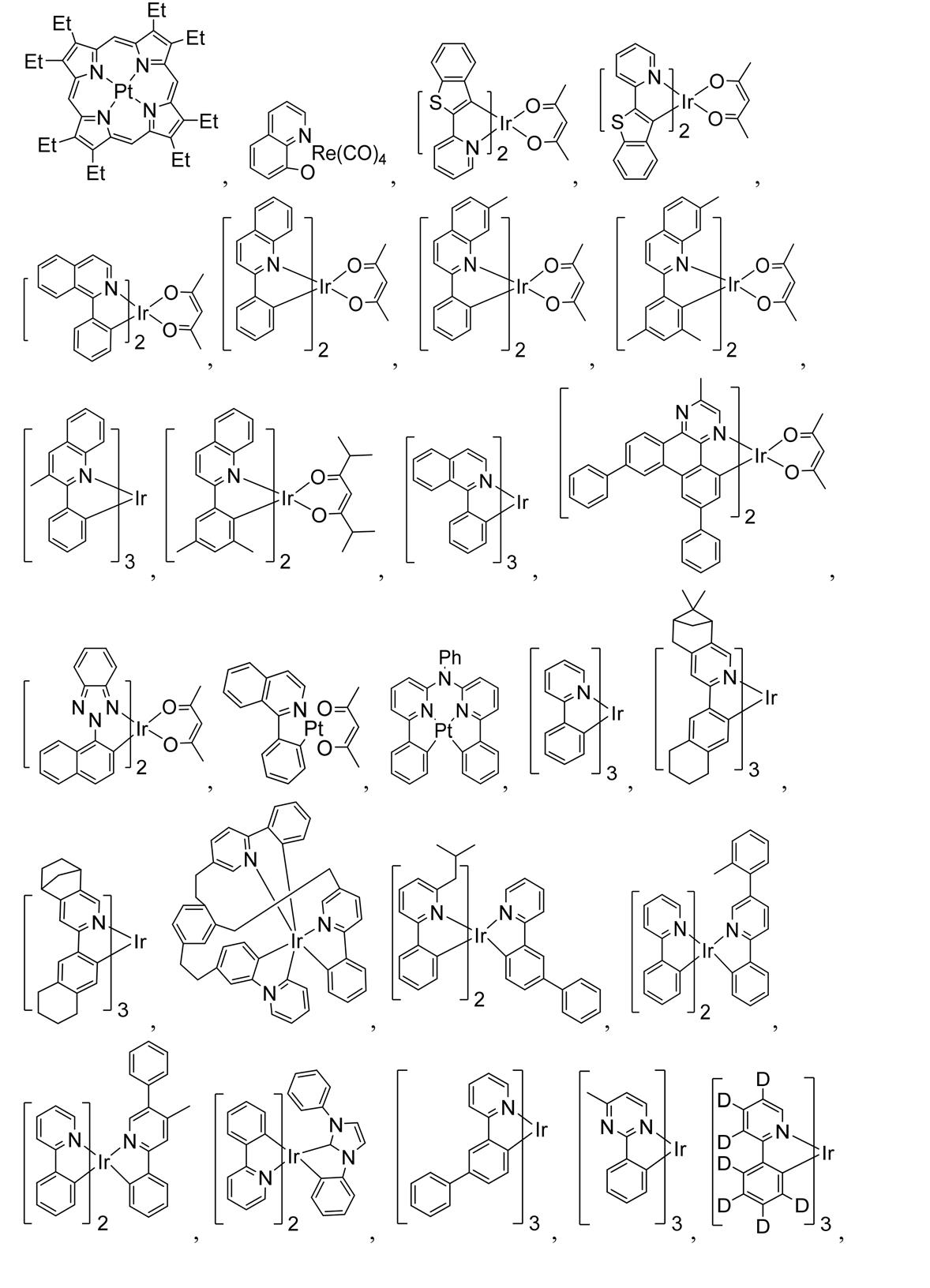 - C09K2211/185—Metal complexes of the platinum group, i.e. Os, Ir, Pt, Ru, Rh or Pd